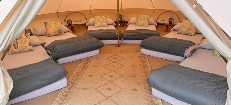 Montamos auténticos “glamping villages” con tiendas, zonas chill out, iluminación ambiente y carpas beduinas para conciertos, talleres o puntos de encuentro.Retiros y wellness