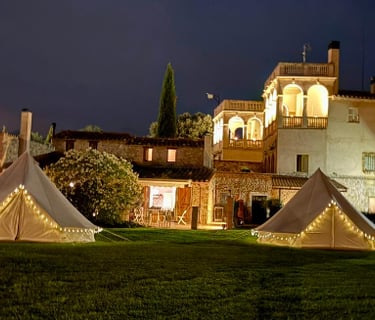 Alojamiento elegante para invitados, zona VIP para novios, glamping village con iluminación cálida y decoración cuidada. Perfecto para masías que quieren ofrecer un valor añadido a sus parejas.Festivales y eventos culturales