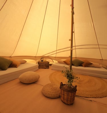 Montamos auténticos “glamping villages” con tiendas, zonas chill out, iluminación ambiente y carpas beduinas para conciertos, talleres o puntos de encuentro.Retiros y wellness